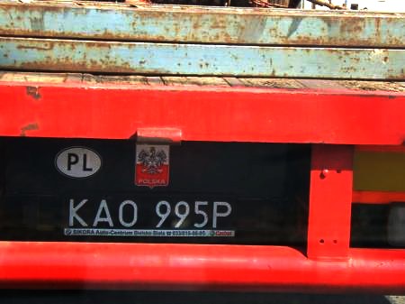 Je pioche mon appareil numérique dans mon sac et je prends une photo du camion. Je m'approche le plus près qu'il me soit possible : la plaque d'immatriculation - KAO 995P - attire le commentaire. Désigne-t-elle la mise au tapis du vieux boxeur spirituel ? Ou annonce-t-elle le chaos où risque de plonger l’Église avec la mort de son souverain pontife ? Pour prendre une nouvelle photo plus rapprochée, il me faudra attendre de rentrer dans Châteauroux et là encore, je crus bien devoir y renoncer car à trois reprises les feux passèrent au vert à notre arrivée, ne me laissant pas le temps de mettre en route l'appareil. Mieux, le camion s'engouffra dans le quartier Saint-Jean, ce qui me déviait de ma propre route. Tenace, je le suivis mais il se gara alors un peu plus loin sur le côté droit. Avait-il repéré ma traque ? S'en inquiétait-il ? Je n'osais m'arrêter moi aussi et, un peu déçu, le dépassai. Deux cents mètres plus loin, je stoppai à mon tour pour rebrousser chemin. Et voilà que le camion repart et vient s'arrêter à ma hauteur... Un homme descend, une carte routière à la main. Il m'explique qu'ils cherchent la route de Blois... Il est clair qu'ils sont perdus, mes routiers polonais. J'invite donc l'homme à me suivre, je me fais fort de les remettre dans le droit chemin... Je repars, mais je me suis sans doute mal fait comprendre car ils font demi-tour... Têtu, je les suis à nouveau et là, au feu rouge de la rue Combanaire, je prends enfin ma photo :